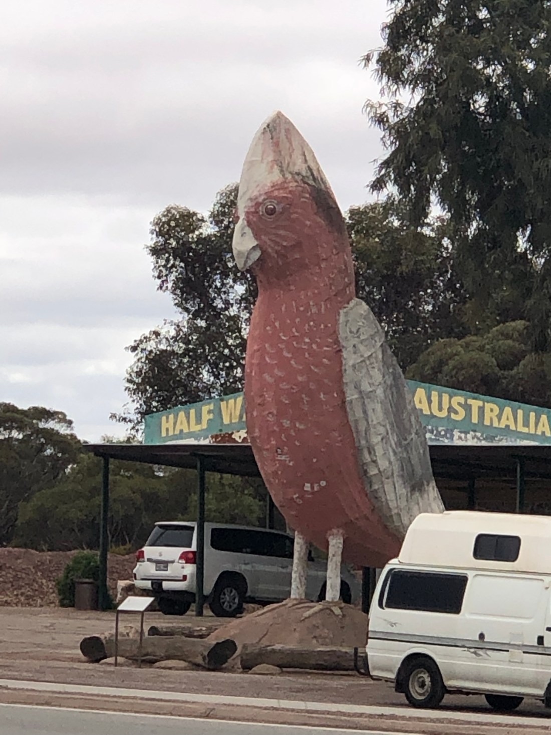 We finally get back to A1 and reach Kimba for morning tea, we were looking for the bakery but couldn’t find it as the town was huge so we found a little cafe which was still very nice. On the way out of town we found the big Gallah and the bloody bakery was right next to it.